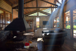 Sendo um local muito frio localizamos os dormitórios na face oeste (mais quente), isolados dos ventos da face sul pelo estar íntimo. Por cima da varanda, na face norte, posicionamos janelas que permitem a insolação da sala.